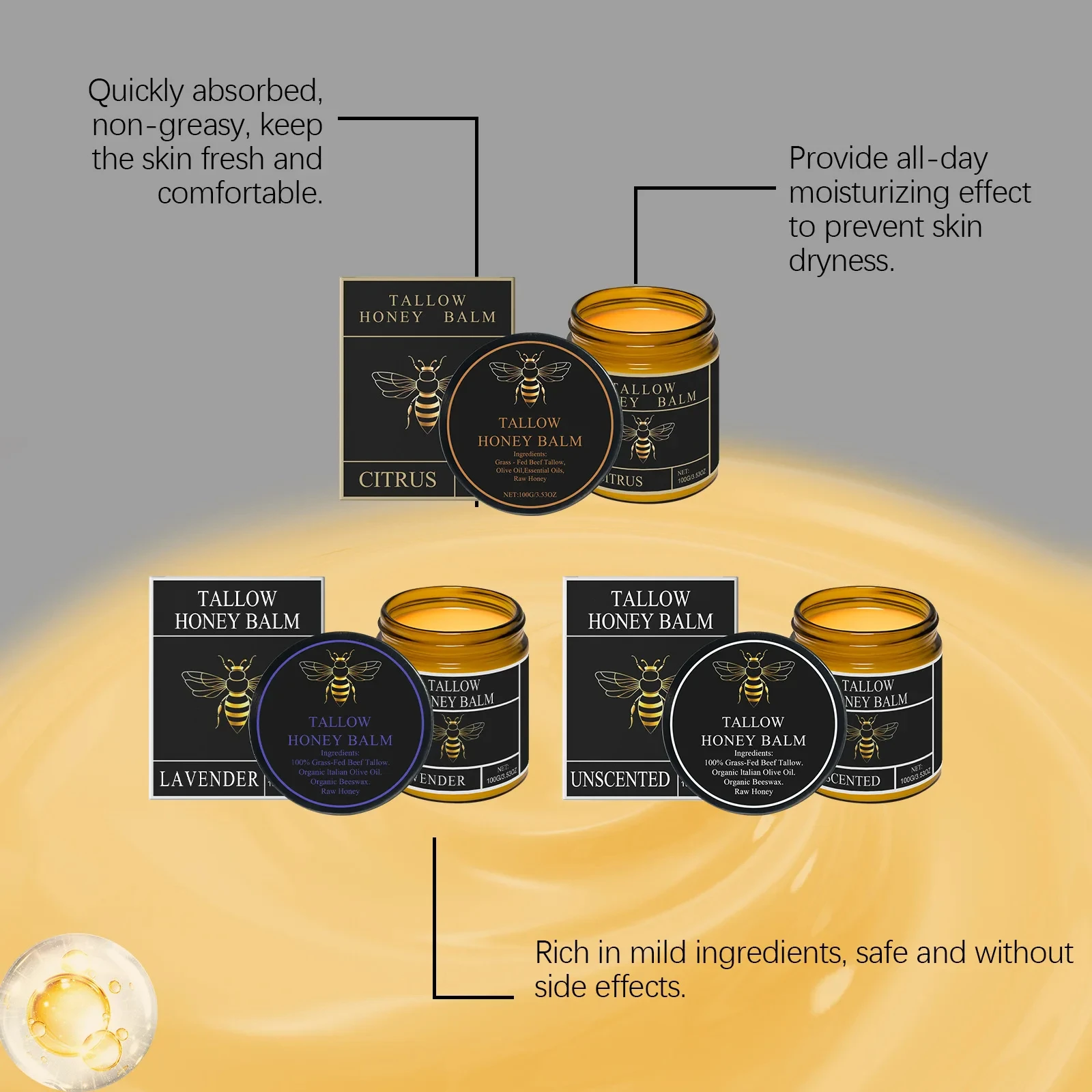 ● Item Type: Tallow Honey Balm