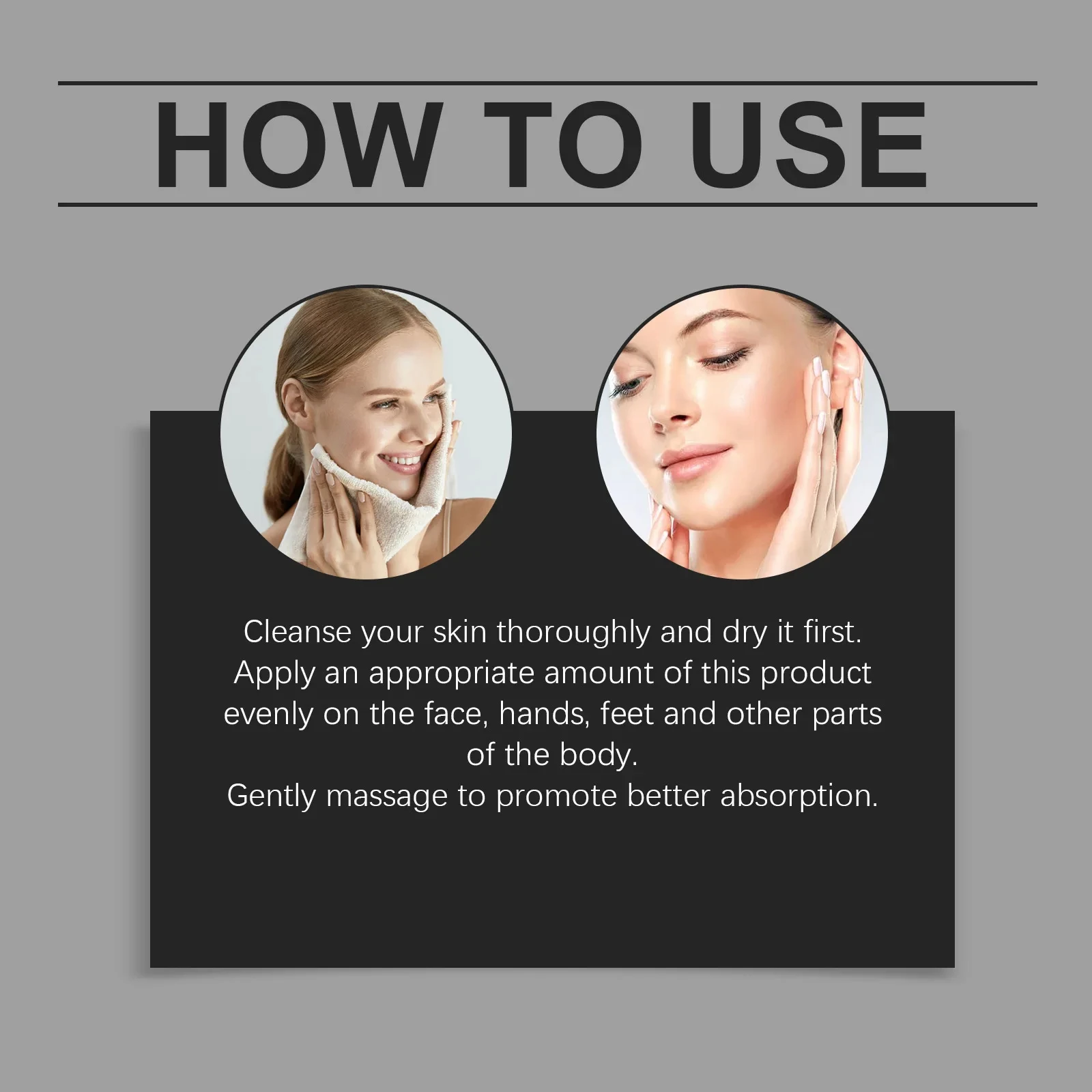 2. Apply an appropriate amount of this product evenly on the face, hands, feet and other parts of the body.